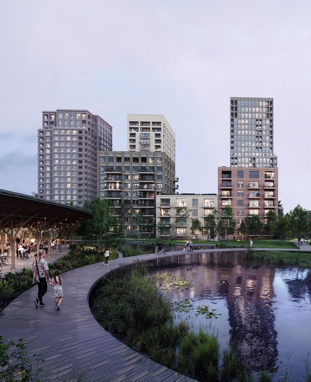 Le bureau MVRDV, installé à Rotterdam, a été désigné comme Maître planificateur urbaniste pour la création du Masterplan de Lake Side. La mission de l’urbaniste est de traduire les exigences d’aménagement urbain et les ambitions architecturales, sociales et écologiques en un concept concret et une étude volumétrique. La vision de la durabilité du client Nextensa a été implémentée de manière optimale.